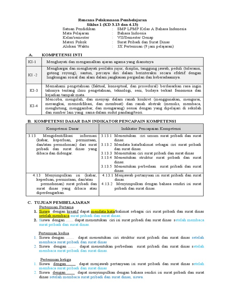 | Lihat Rpp Kd 3 13 Dan 4 13 Surat Pribadi Surat Dinas |